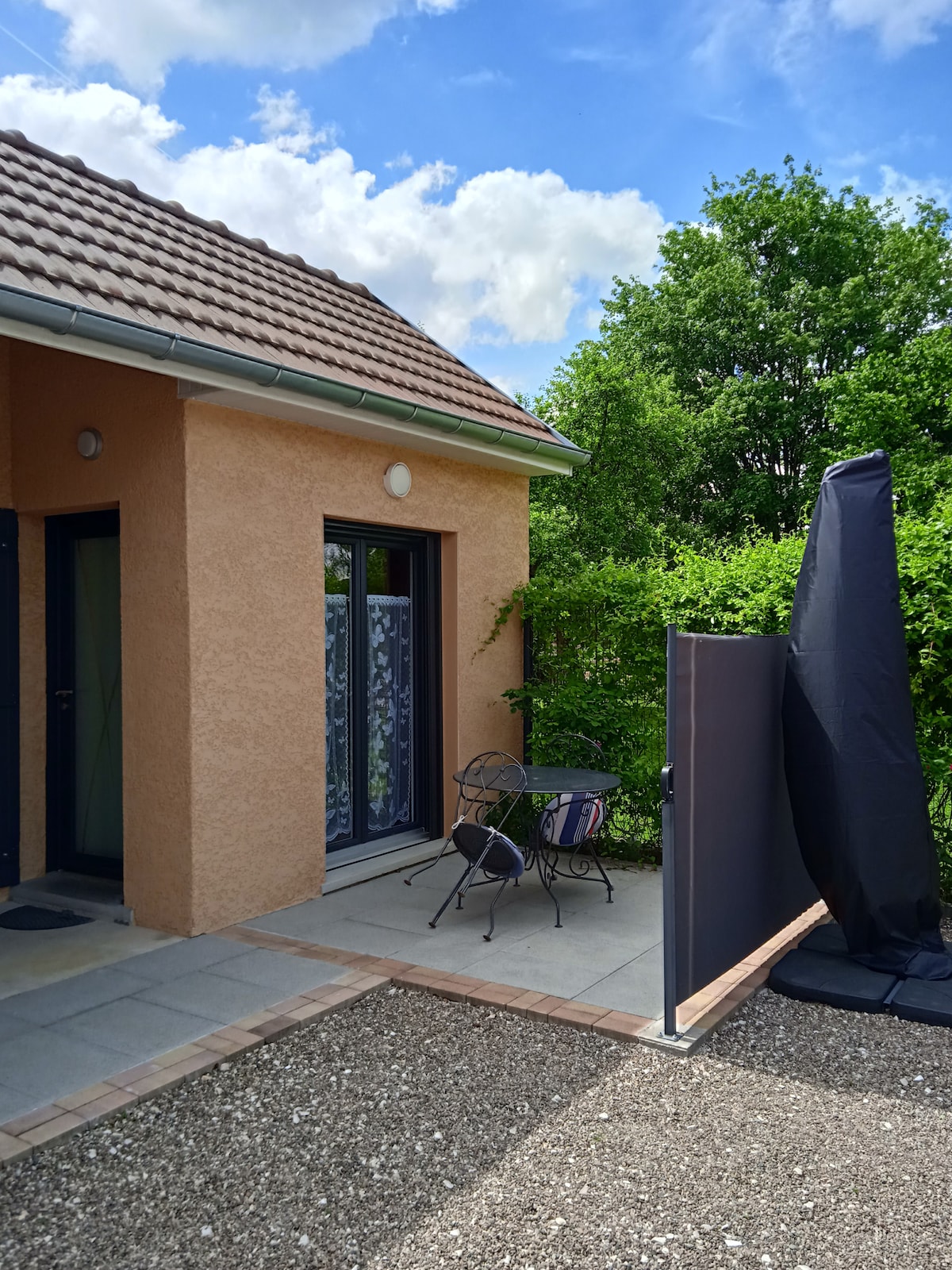 Le Patio, 3*** furnished tourist and business accommodation is a former workshop located within the grounds of the owners' 1930s house: a haven of peace, in town and close to the Témis – Micropolis district and universities. Terrace and small corner of greenery just for you. FREE parking on the property.