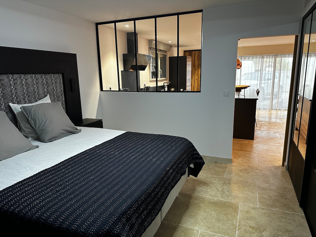 In the heart of the Bandol vineyard, 10 minutes from the beaches of Bandol or Lecques. Independent studio, air-conditioned, quiet in the countryside. Main room of 32 m2 with 2 sofas and mezzanine of 5 m2 (160 bed). Office area, Wi-Fi internet access. Fully equipped kitchen, TV and shower room with toilet as well as a dressing room. The 22 m2 terrace with pergola equipped for meals with gas BBQ. Free access to a washing machine. Parking and private outdoor access for your vehicle.