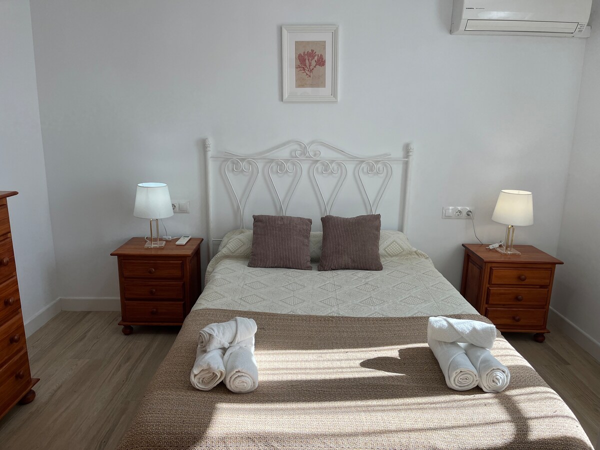 Great penthouse less than a 1-minute walk from the promenade and Cala del Moral beach. Very bright and sunny with a south-facing orientation. Ocean views from the terrace. It has two bedrooms, one double and one with a single bed, a bathroom, a kitchen equipped with all the necessary utensils for cooking, and a living room. The bedrooms and the living room have air conditioning. The parking is private, small and the maximum car size that fits is a Volkswagen Golf type.