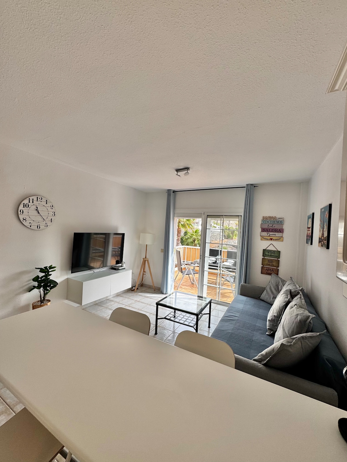 A soli 2 minuti in macchina da Los Cristianos e Las Americas, in tranquillo residence, studio recentemente rinnovato. Angolo cottura dotato di piastre elettriche, bollitore, tostapane, caffettiera, frigorifero e congelatore, microonde. Lavatrice presente nell appartamento. Wi-fi illimitato e Smart TV. Terrazza con vista mare e fantastici tramonti. Parcheggio gratuito nel residence (posto non assegnato). Vicinanza di fermata autobus, ospedale, campo da tennis, minimarket e caffetteria.