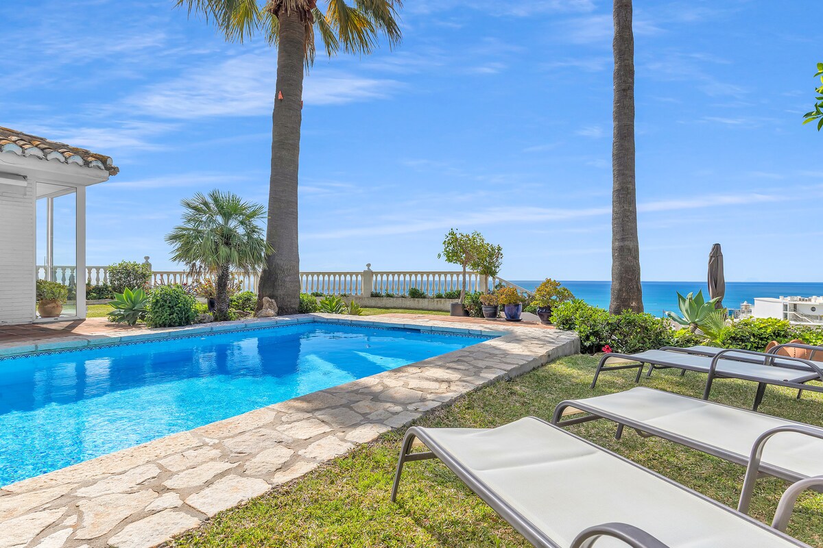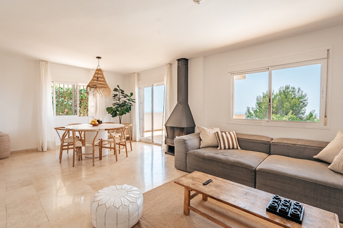 ¡PRECIOSA VILLA con IMPRESIONANTES VISTAS AL MAR! Patio de entrada con leñero. Salón con chimenea y zona despacho. Comedor con arco marroquí. Bonita cocina amueblada. Terraza cubierta con gran mesa comedor y zona para tumbonas y TV. Dormitorio principal amplio y ducha en suite. 2ª Cocina con zona lavadero. 2 Dormitorios, con duchas en suite. Gran terraza cubierta con zona BBQ, comedor y sauna. Piscina (de agua salada) y gran terraza soleada. Parking privado para 3-4 coches.