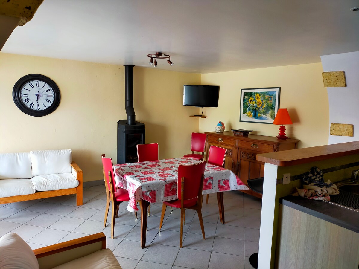 Great place for a relaxing stay with family or friends! Equipped with a full kitchen, bedroom with a double bed of 140 x 190 and a sofa bed of 140 x 190 TV đș, Netflix, free WiFi access, some games to spend time and also books if you are in love with literature. For your comfort, sheets, bath towels, shampoo, coffee/tea and Madeleines are available FREE PARKING đ in front of the door of the accommodation đ come and discover âșïž