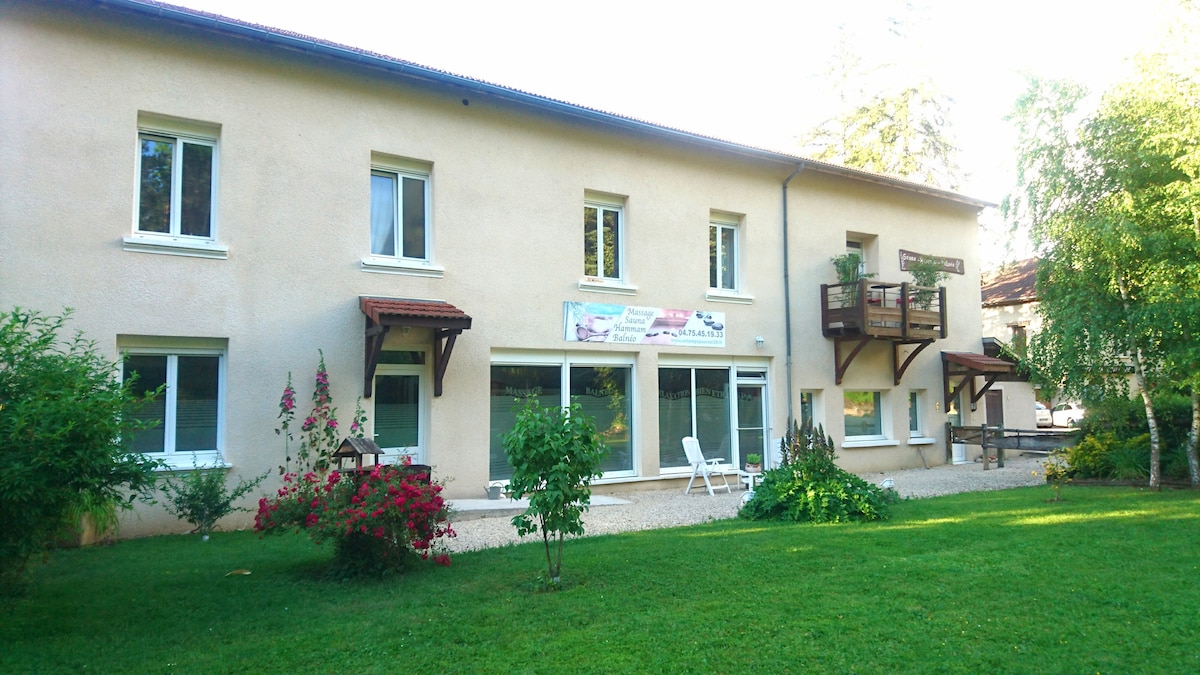 Are you a fan of originality and well-being? The "Spacious Suite" in green Ardèche - vernosc lès annonay cradle of hot air ballooning. In peace and comfort, this suite will allow you to have a pleasant stay. Located near regional cities such as Lyon, Saint-Etienne or Valence, The Spacious Suite will allow you to enjoy a unique romantic moment in the heart of the Ardèche countryside. All this in total independence, autonomy and discretion.