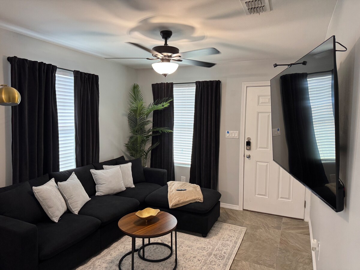 Welcome to Casa by CMC I Enjoy a spacious living room with reclining green sofa chairs, a relaxing patio, and backyard. Each bedroom includes a TV, plus a 1-car garage and washer/dryer for convenience. Located 5 minutes from restaurants, 10 minutes from the medical center, and a short drive to Weslaco, McAllen/Edinburg, Brownsville, and South Padre Island—your perfect home away from home.