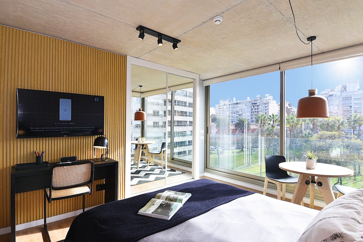 Strategically located studio, minutes from the International Airport, Zonamerica, the exclusive Carrasco neighborhood, 300m from the beach, and 100km from Punta del Este. Room equipped with unparalleled lake view. Modern complex with amenities that guarantee a stay with maximum comfort: Garage for exclusive use, open pool, heated indoor pool, barbecue with grill, gym, laundry, coworking and meeting rooms, and living space with community kitchen.