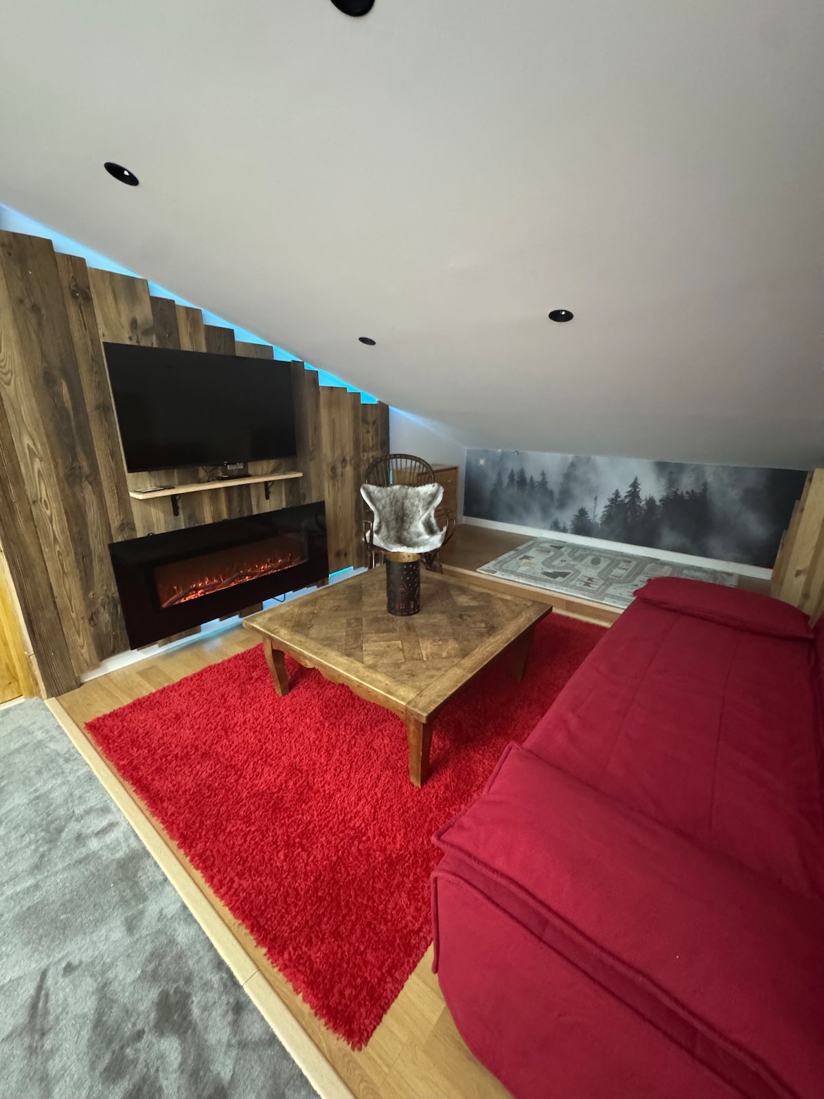 This newly renovated unique home is conveniently located above the Le 106 restaurant. The balcony overlooks the "Lachaup" and "l'Aiguille" ski lifts and the ESF private lessons. The building is right across from the tourist office and all local shops. You can walk directly to and from skiing. The "Triplex" type layout with mezzanines and the cozy chalet-style decoration make this apartment a special property where you can feel good.