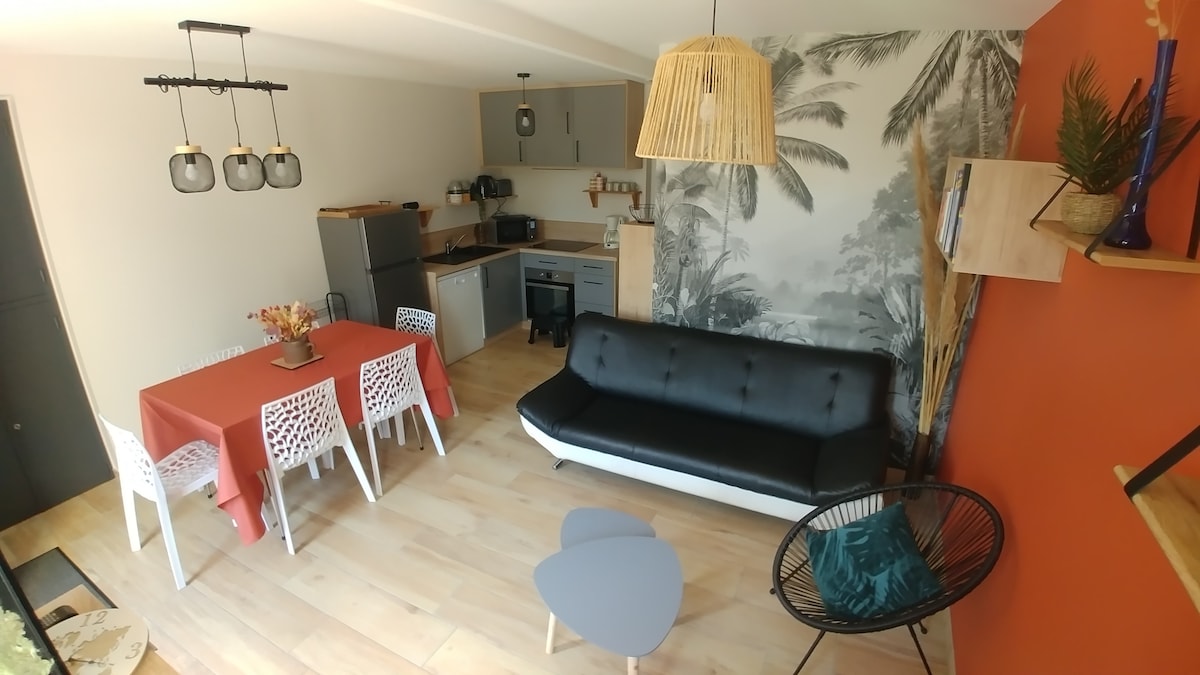 46 m2 cottage located in the countryside, just 1 km from shops (with laundry available). This is a part of a farmhouse (completely renovated in 2023) that is occupied by the owners, alone at the top of this village. Peaceful stay guaranteed. Non-smoking accommodation. Pets not allowed. Reserved car parking as well as small private land to enjoy the outdoors in the summer. Garden furniture and charcoal BBQ available. (Charcoal not included) Autonomous access by code box.