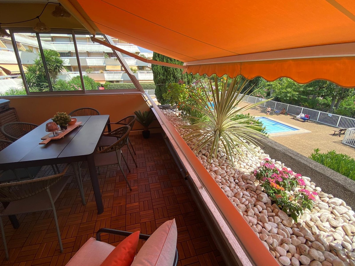 ⛱ Cozy studio, completely renovated in a very quiet & pleasant residence ⛱ ▸ 3 minutes from the beach with sea view from the balcony Private, fenced & secure▸ parking: space to park 2 cars ▸ Fully equipped: Wi-Fi, Air Conditioning, TV, Washing Machine ▸ Linens provided: sheets, towels, blankets ▸ Close to shops & restaurants (Lidl, Super U, bakery, tobacco,...) Flexible checkout▸ times ▸ Ideal for 3 people (2 adults & 1 child)