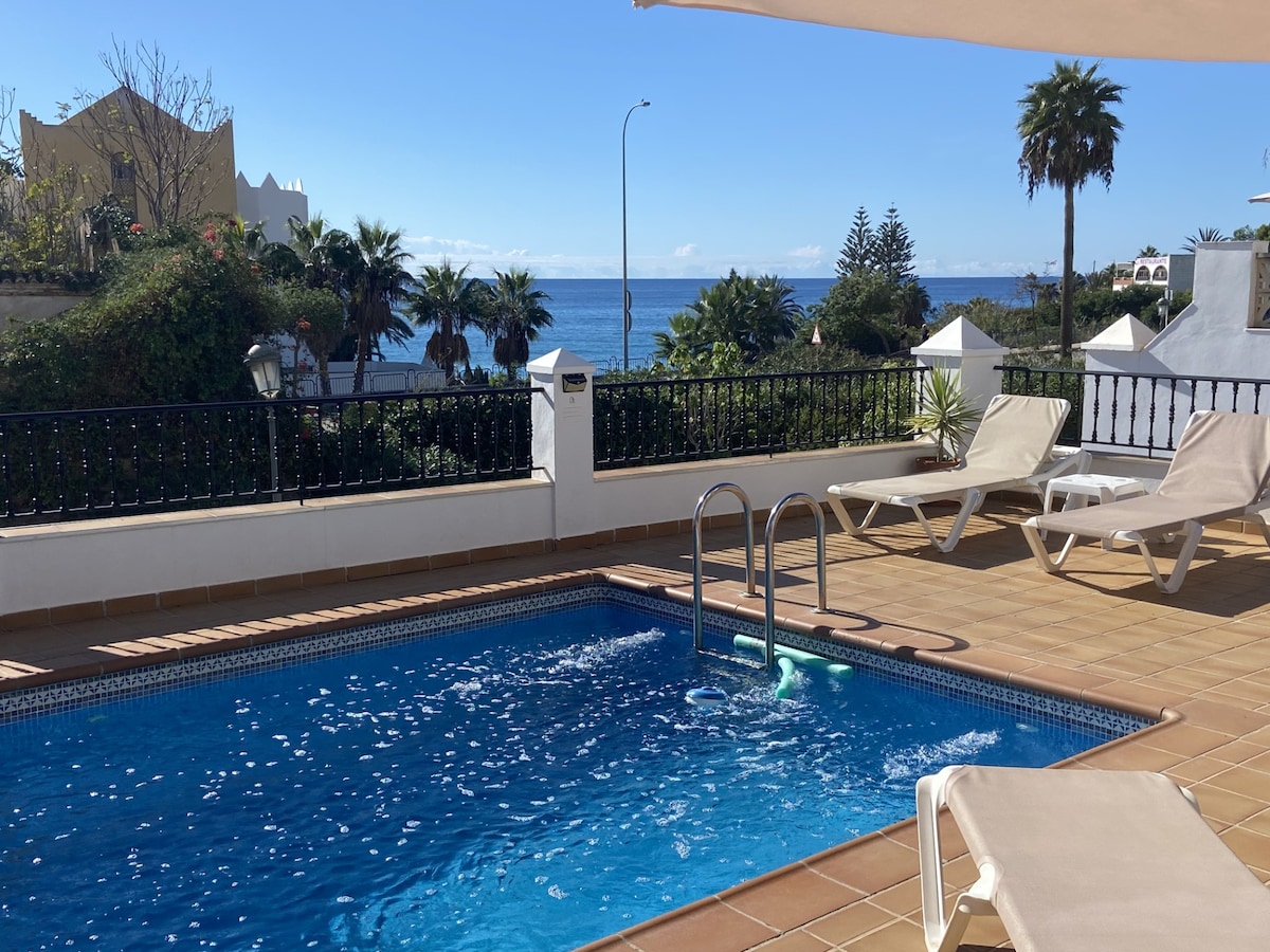 Luxury villa. Fully furnished and equipped. 4 bedrooms 2 bathrooms and toilet. With WiFi. A/C, HI-FI music, T. Perfect for working remotely. All rooms overlook the Mediterranean and Sierra Nevada. Giant terrace (solarium, dining room and chill out relax) to enjoy the views. 2 COMMUNITY pools and 24-hour security. Peace and quiet assured. 500 meters from the beach and 3 km from downtown. Skiing and beach in the day IDEAL LOCATION for excursions.