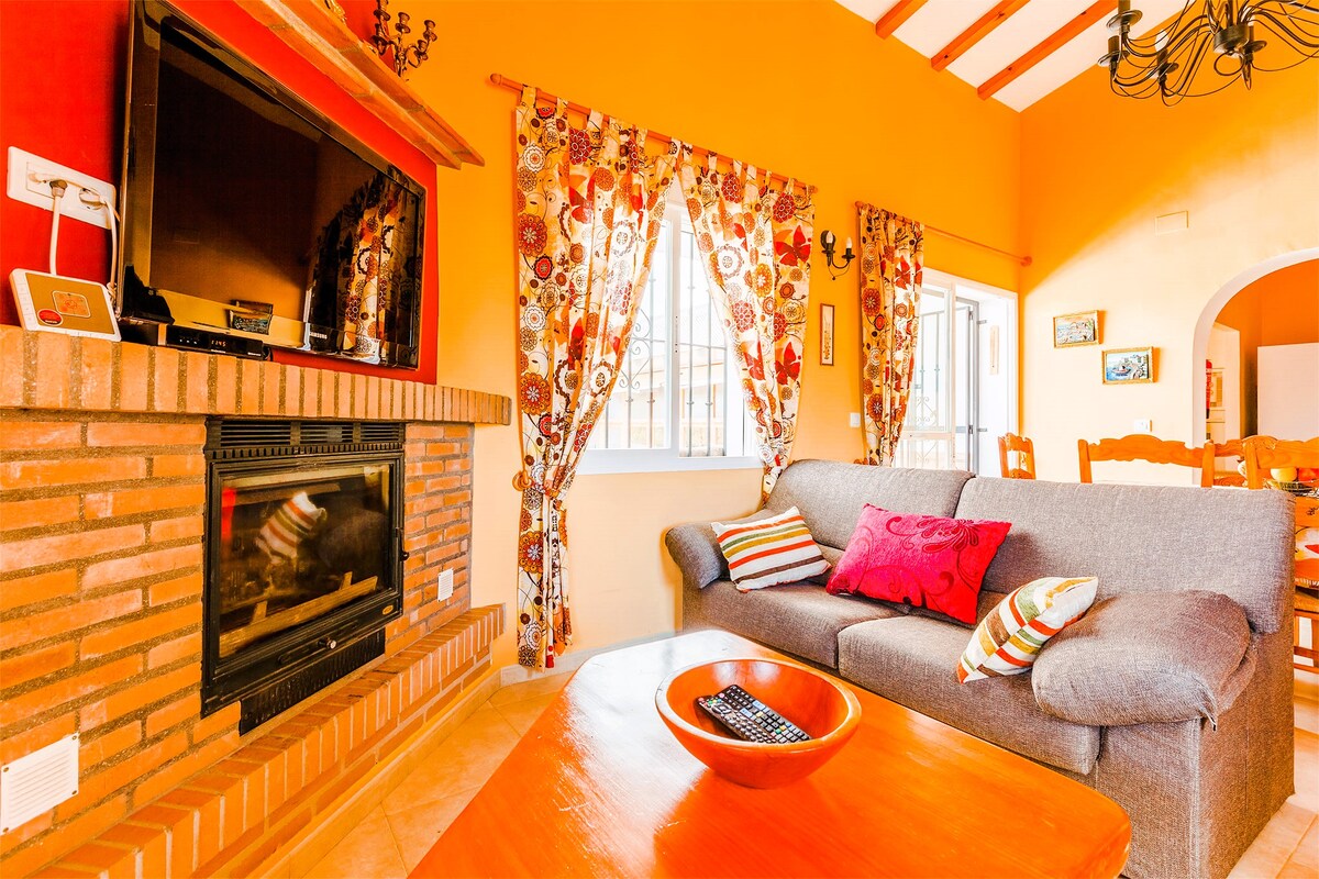 Extraordinary and unique Villa in the Axarquía Region AIR CONDITIONING IN ALL BEDROOMS AND IN THE DINING ROOM AND KITCHEN Spacious home, designed for the accommodation and coexistence of 12 people, with large spaces and comfortable areas Special mention should be made of its two living rooms, one of 30 m and another of 60 m, both with fireplace and TV, the 60m one (with barbecue) being an incredible place to share and meet since it has a large table for 16 diners.
