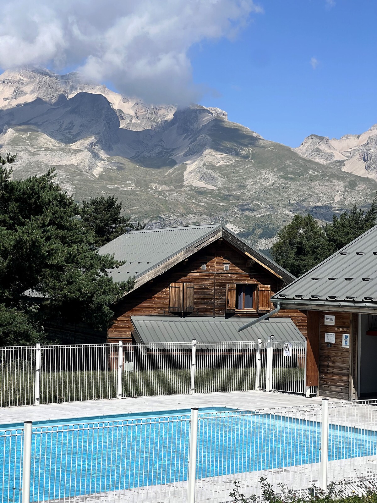 Warm chalet in the heart of the village, Les Flocons du Soleil residences, at the foot of the Joue du Loup slopes. A 5-minute walk from the snow front, the cottage will offer you a peaceful foothold with views of the mountains. Accommodating up to 5 people, you can also enjoy the mountain view pool, sauna and pool table in the reception cottage. Back from skiing or hiking? Come back to the warm chalet and enjoy a good raclette!