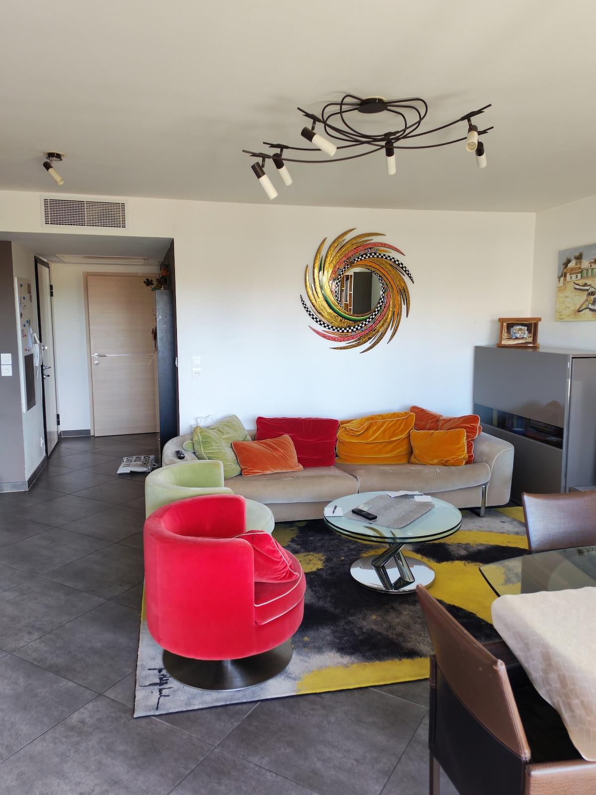 Bright and spacious apartment of 90m² on the 1st floor of a family house, with open sea view and private southern terrace. Located in a quiet environment, just 2.4 km from the beaches and in the immediate vicinity of the trails, it is ideal for savoring a breakfast in the sun or an outdoor evening. Completely independent entrance, secure private parking and full reversible air conditioning for optimal comfort.