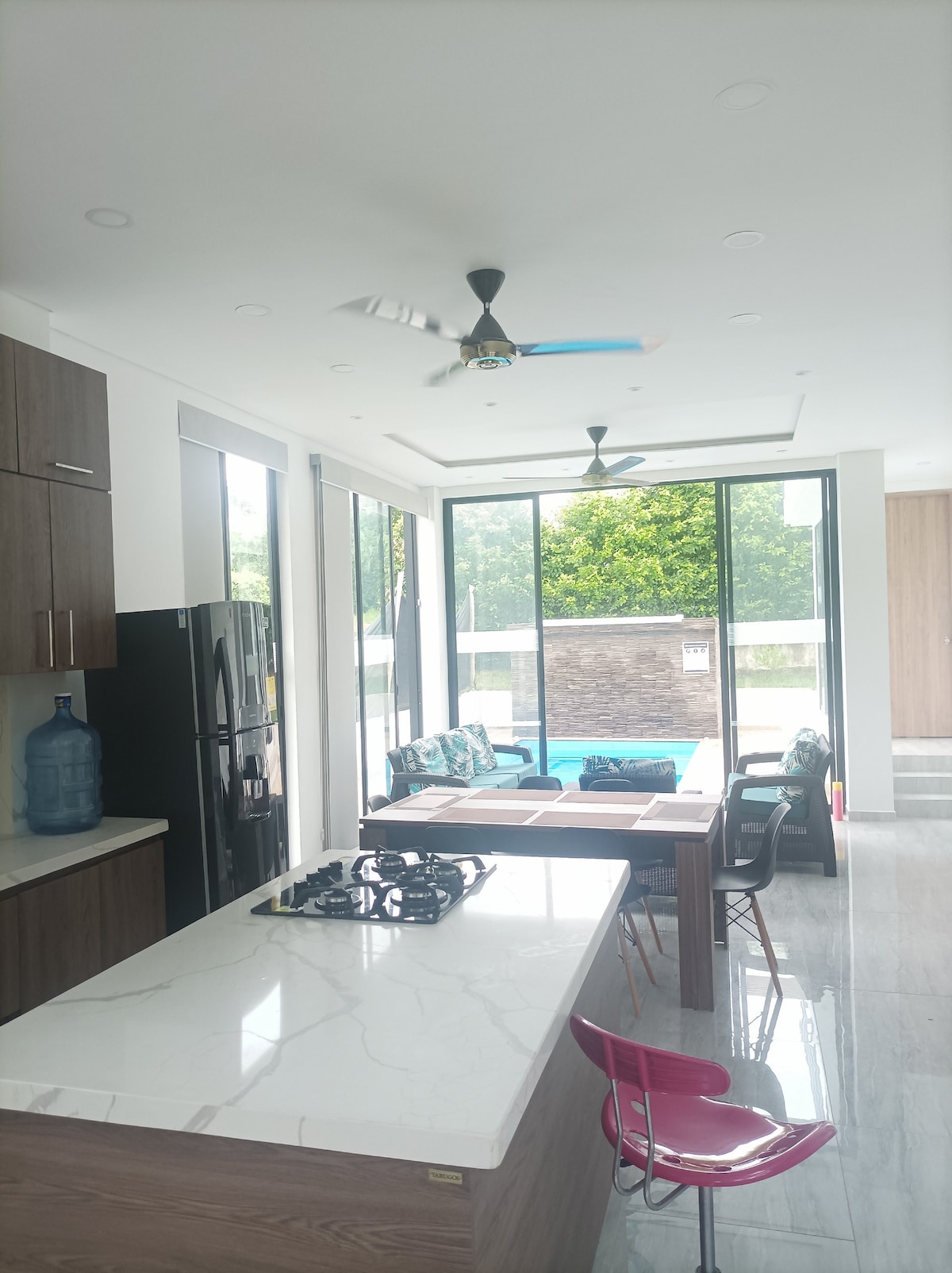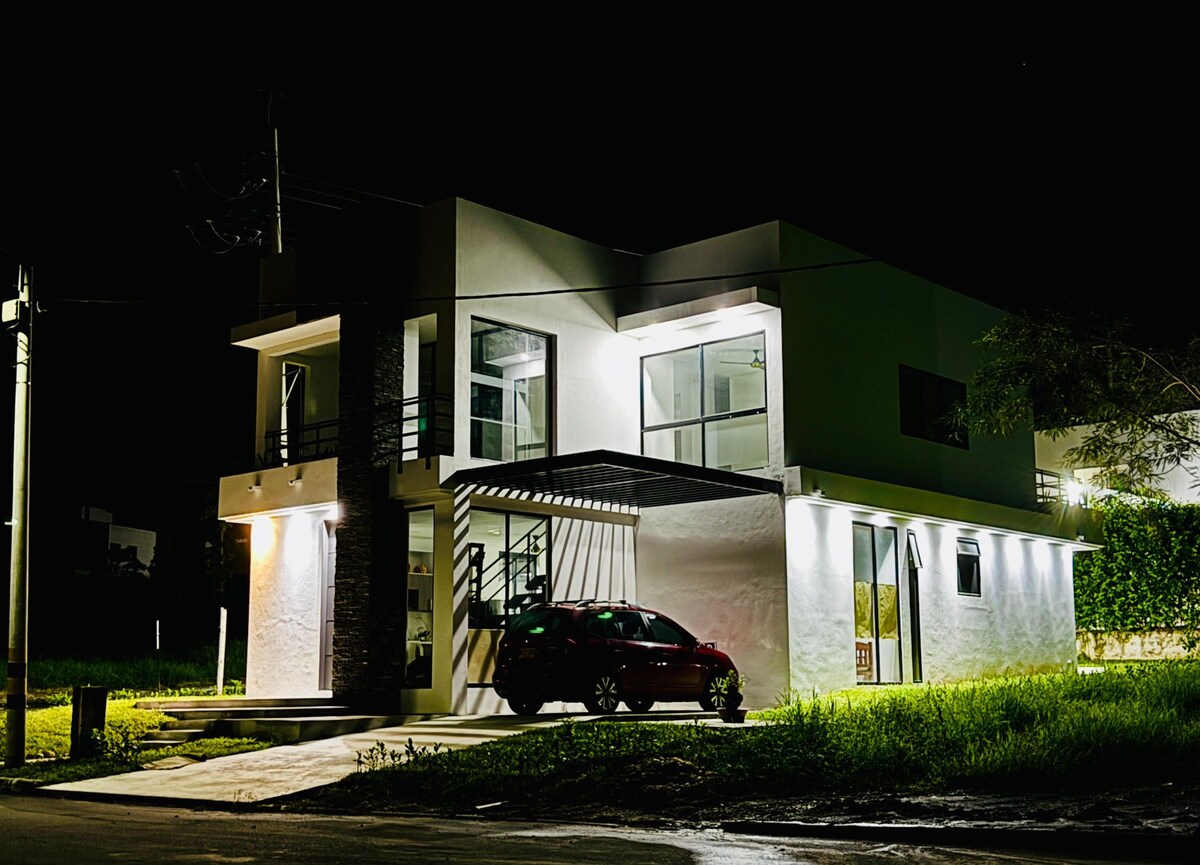 Welcome to Casa Bemba! Modern house located 15 minutes from Melgar, on the main road, with ample spaces to relax and socialize. Enjoy all the amenities we have, including the beautiful private pool with glass wall, luxury kitchen, XXL living and dining room, BBQ, 5 comfortable rooms with private bathroom and air conditioning. Surrounded by a beautiful landscape, it gives you the privacy and tranquility you are looking for a perfect weekend. Starlink Internet. @casa.bemba