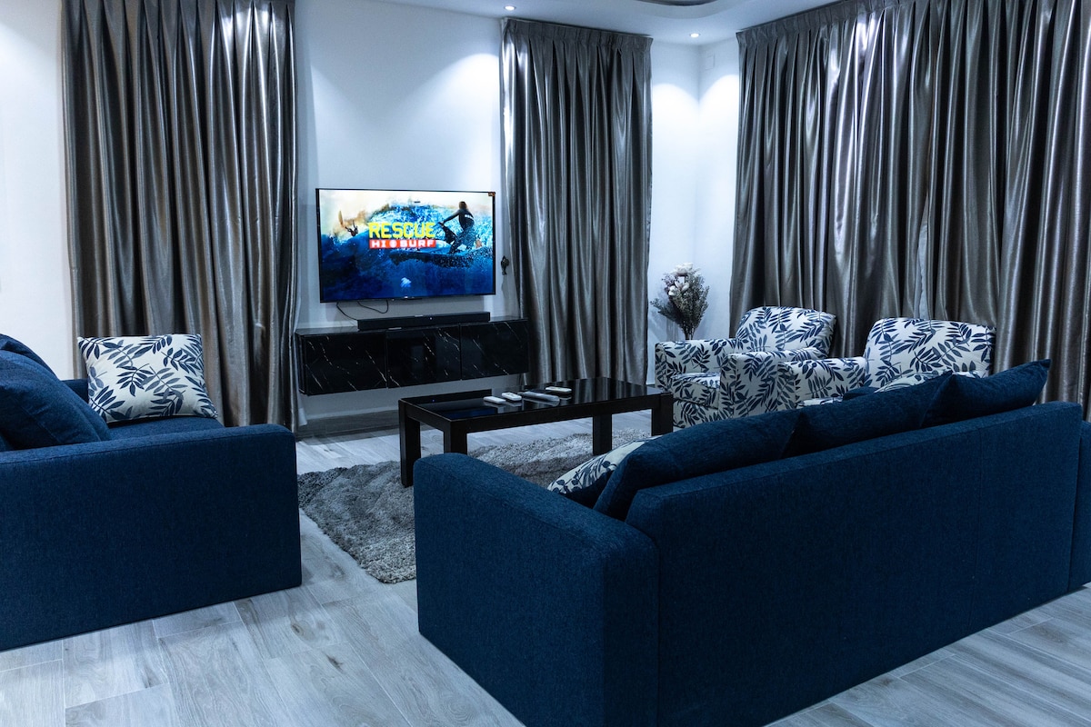 Welcome to Doreen Deluxe is a luxury 2-bedroom, 2.5-bathroom 1st floor apartment in Lakeside, Accra. Both bedrooms are en-suite, offering comfort and privacy. Enjoy a modern kitchen with all appliances, spacious living areas, and plush bedding, super-fast Wi-Fi and A/C. The back-up genset ensures electricity. Relax on the private terrace, and explore the serene neighborhood with nearby parks, dining, and amenities. Kick back and relax in this calm, stylish space.