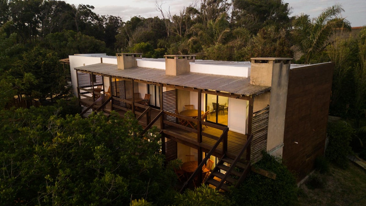 It is a modern and functional studio apartment, with minimalist design architecture, equipped with a double bed and sofa bed, private bathroom and kitchenette. Located in a forest and beach environment. Ideal for a couple alone or with a child to enjoy a vacation close to the beautiful beaches of La Pedrera, and incredible nature spots in the vicinity.