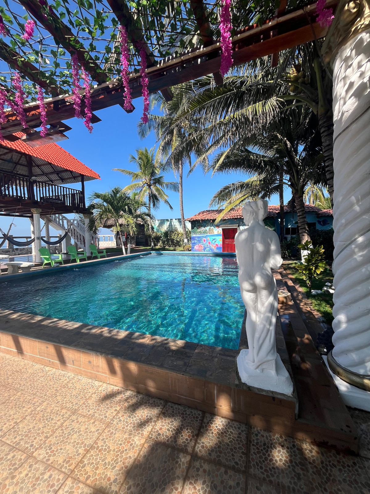 Rancho "El Nuevo Amanecer" is a 6 years old beach front home with a private pool , built June of 2019. This home offers the perfect beach views, excellent location and unbeatable beach access.....right on the backyard Recently built a new Ranch for Hammocks with 2nd floor , the 55 coconut trees will provide natural shade for your enjoyment. And now we have Cable tv connected to two 45" flat screens and hair dryers on each bedroom AND PLEASE, NO GLASS CONTAINERS IN OR AROUND THE SWIMMING POOL