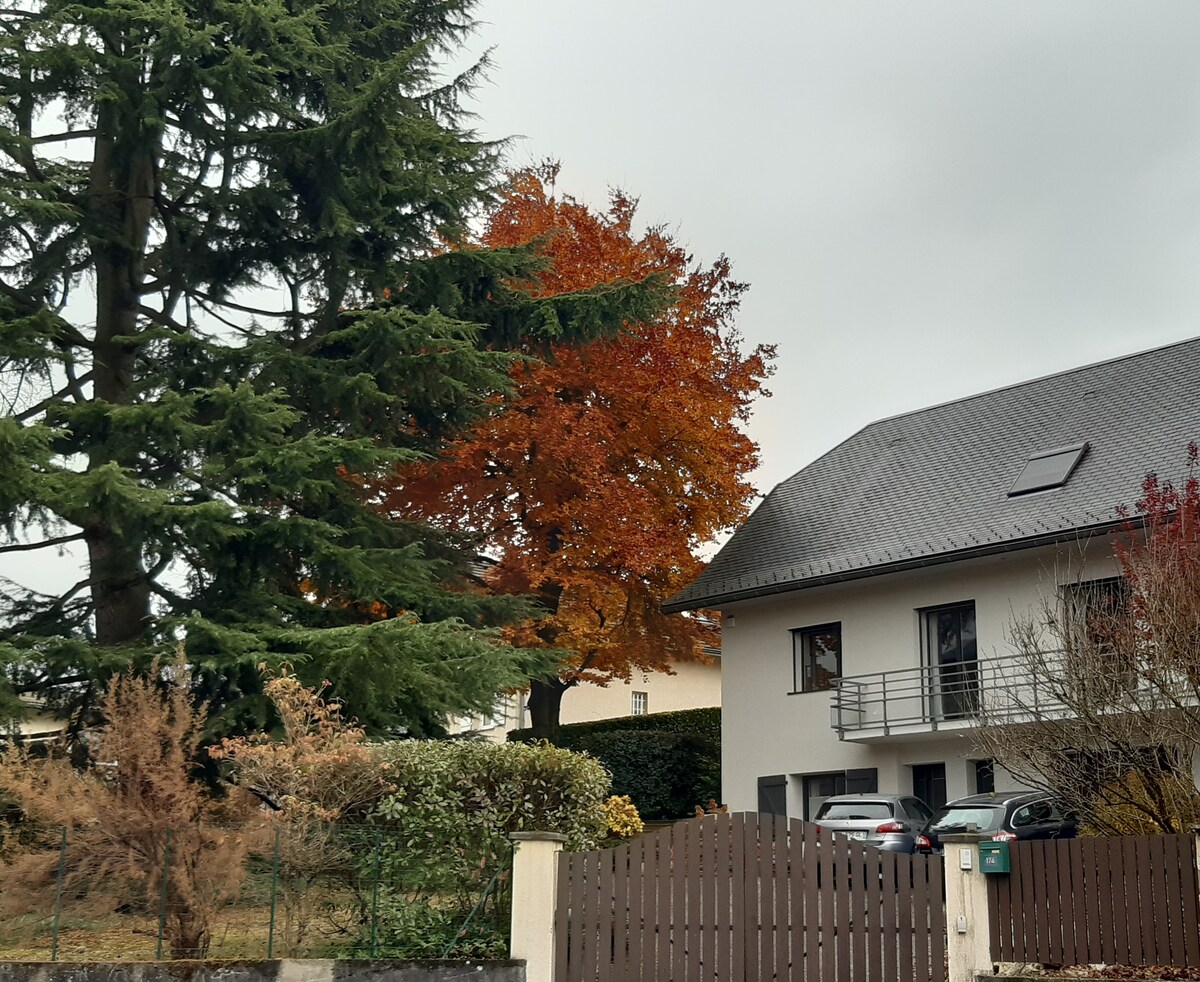 Large 39 m² F1 studio, very functional, ideal for (tele)working or resting Equipped with a large desk, Wi-Fi and fiber optics, separate kitchenette, appreciated because it is modern, sober and practical, with large storage, On one level, on the ground floor of a villa, in an exceptional setting facing the 3 massifs. Independent access through the garden. Quiet residential area - Immediate access and transport, 2 min A43 Body of water for swimming. Winter sports resorts nearby. Bike shelter.