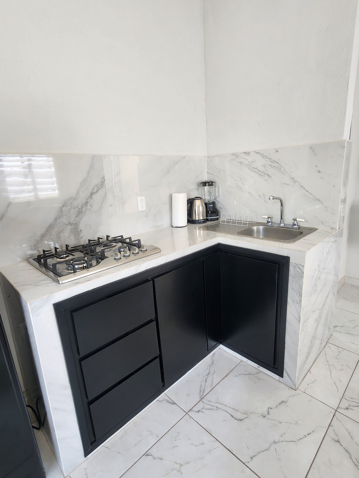 Relax with the whole family in this accommodation where tranquility is breathed. Brand new apartment, ideal for 2 adults and 2 minors, has a king size bed and a sofa bed. There is a shared washing machine and dryer on the third floor. The palapas are available as a recreation area.