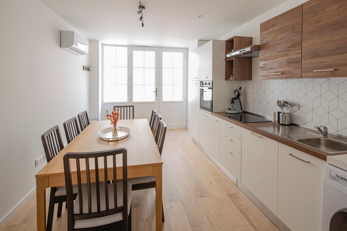 In the historic center of Bourg, ideally located, between Place de la Halle and the Church, you can stay in our apartment and its green patio to visit our beautiful region, make a stop in the picturesque medieval village of Bourg, taste the wines of the Côtes de Bourg and enjoy the surrounding entertainment. Recently renovated, we are committed to offering you accommodation that combines the charm of the old and modern comforts.