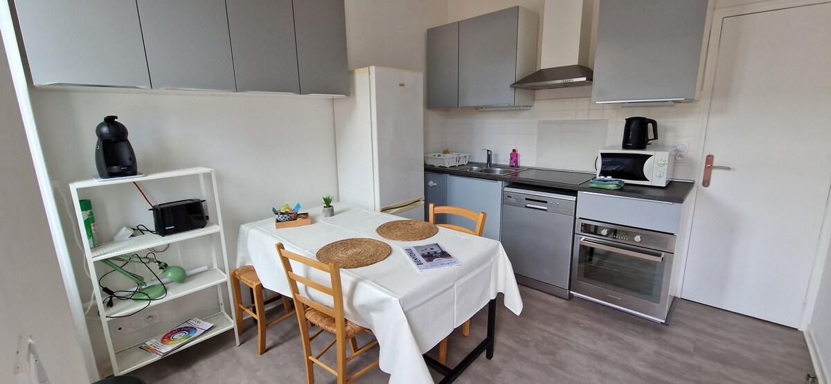 Independent studio located in our house, close to the center and available from Sunday evening to Friday morning, ideal for work-study student or worker on the move. This 15 m2 studio, completely renovated is perfectly equipped with a new 140 cm bed, open bathroom (shower and toilet), kitchen area. You will love our place because of its comfortable bed and independence. /!\ STRICTLY non-smoking accommodation, no smoking allowed in front of the house.