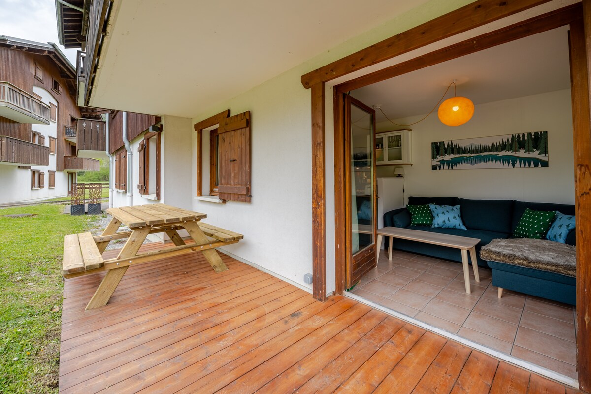 Take a break and unwind at this peaceful oasis in the heart of the mountains. This beautiful refurbished studio is located in the Golden Triangle, less than 30 minutes from Geneva, 45 minutes from Annecy and Chamonix. You will have access to the various outdoor areas as well as the nearby ski resorts: Les Brasses, Les Gets, Morzine, Châtel, Avoriaz, Samoëns. From May 15, the outdoor pool is accessible until September 15. Great place to stay for 2.