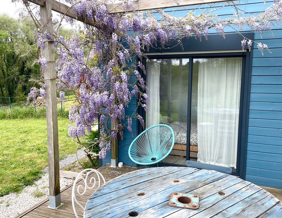 Located in the heart of nature and forest, and close to everything, in Marzan near La Roche-Bernard. Wooden hut and its 70s decor to welcome you, a warm and independent space with a kitchen and all its comfort, a double bed 160 cm bedroom area. Bathroom with shower and dry toilet. You have a private terrace.