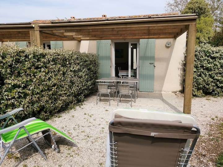 Independent house of 30 m2 in Lagord. at the gates of La Rochelle and Ile de Ré. bedroom with double bed, kitchen with NON-convertible sofa, dining table, and DTT TV, Nespresso AND filter coffee machine, kettle, toaster, microwave, oven … Bedding and towels provided. Possibility of accommodating a baby, bring your bed! Free parking place in front of the house. Key box for late check-ins Feel free to write to me:) Water heater and Wi-Fi work perfectly