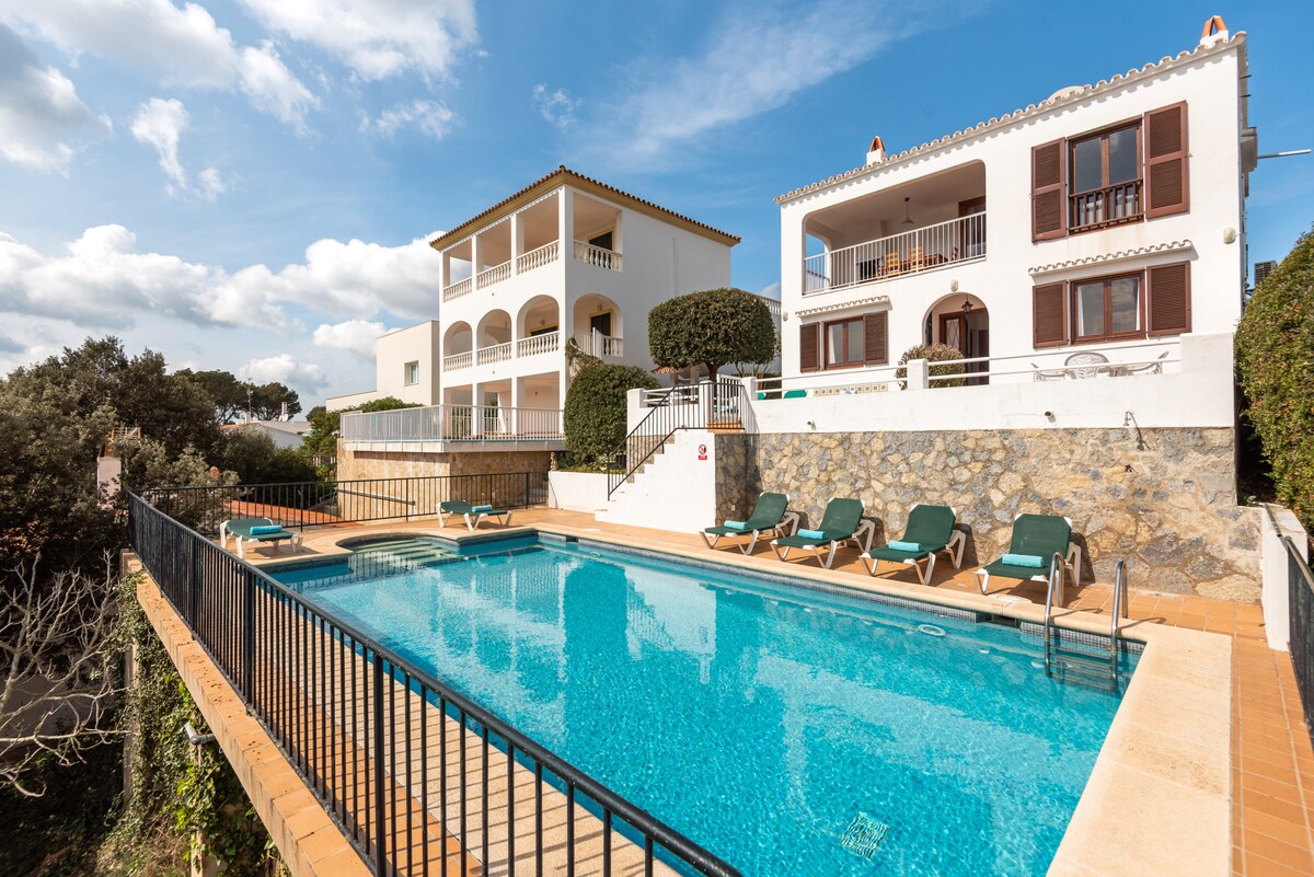 A charming villa with ocean views, near the great Son Bou beach, on a quiet street at the end of the Torre Soli Nou development, an 18-minute walk to the beach and 4 minutes from Cami de Cavalls that leads to Santo. It has an outdoor terrace and a beautiful pool (5.5x3.5 meters), not heated, surrounded by a very well-kept flower garden. A staircase leads to the terrace to enjoy the ocean view. https://instagram.com/lamaison_de_lo?utm_medium=copy_link