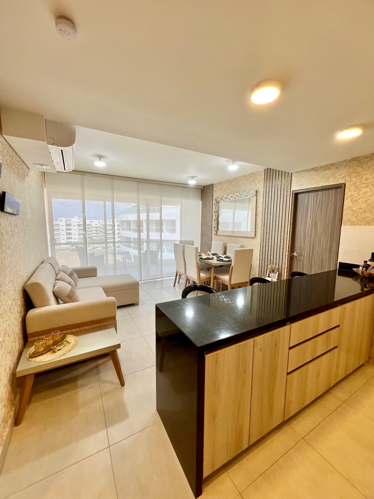 Immerse yourself in luxury and tranquility at Baia Kristal. We welcome you to this beautiful and cozy apartment for rent, located in the exclusive complex that houses Colombia's first crystal lagoon. With 80 m² of carefully designed space, this space is a haven of comfort. It features two comfortable bedrooms and two full bathrooms for your complete privacy. The open kitchen invites you to prepare delicious meals, while the terrace offers unforgettable sunsets.