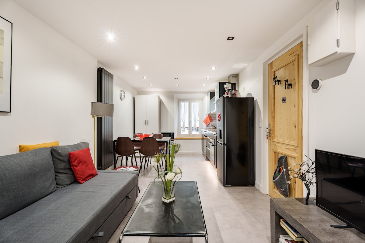 ❄️ Last winter stays in Villard-de-Lans There's snow! The summits are white. The village lives to the rhythm of sunny terraces and ski returns. ⸻ 🏡 The Deer Trail – Premium design & comfort cocoon 45 m² fully renovated, designed as the antidote to tired ski apartments. Here: wood, stone, light… and this immediate feeling of being well. 📍 3-minute walk to the center 🎿 Minutes away from the slopes and wide open spaces of Vercors