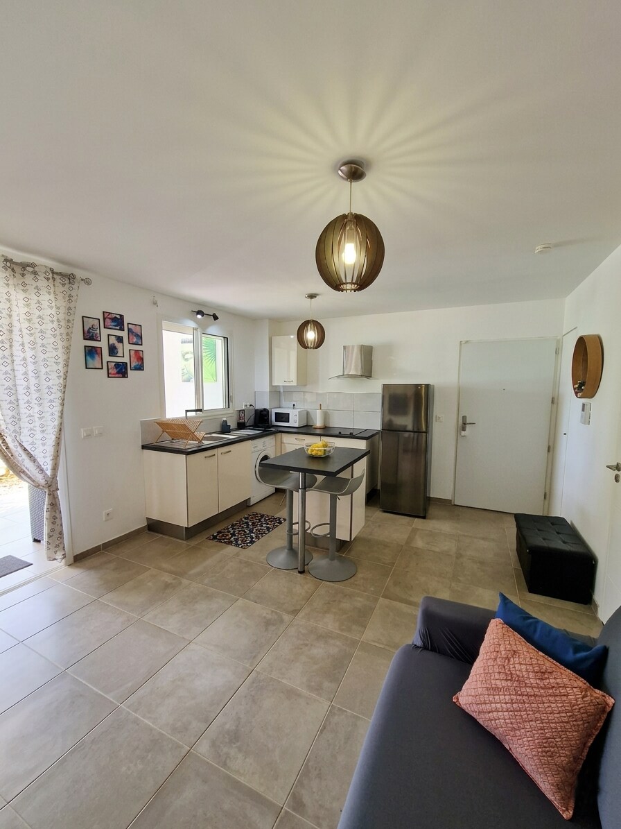 Experience exceptional moments in a fabulous one-bedroom apartment (64m²) located in a luxurious, secure residence just 5 minutes from the capital, Fort-de-France, where you'll be lulled by the waves and amazed by the magnificent sunsets. Access to nearby beaches, restaurants, a supermarket, a casino, and a diving center are all within 3 minutes. High-quality amenities: queen-size bed, air conditioning, a fully equipped kitchen, masks/snorkels available, and secure parking.
