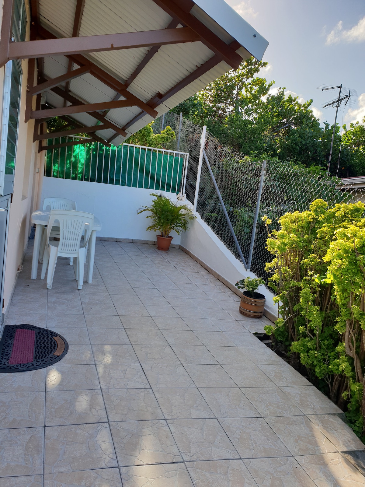 Pleasant apartment at the bottom of the villa: • Ideally located, just 10 minutes from the airport and shopping malls. Its central position is perfect for discovering the beaches of the south as well as the lush nature of the north. • Clean, spacious and functional, with a separate entrance for more privacy. • Large terrace with green garden, ideal for relaxing and enjoying the tropical setting. A perfect base from which to explore the whole of Martinique.