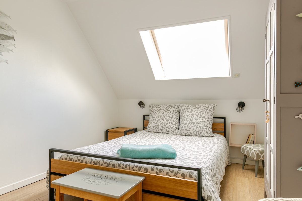 Welcome to our small studio (ground floor) located at the entrance to the Gulf of Morbihan, 15 minutes from the beaches, 10 minutes from Vannes. The studio (1 km from the shops) consists of a kitchen area on the ground floor, a shower in a 10 m² space, upstairs a 13 m² bedroom with a shabby chic cocooning atmosphere with a double bed, a wardrobe. The staircase is not suitable for a person with reduced mobility. Independent entrance, private terrace, table, garden chair, sunbathing