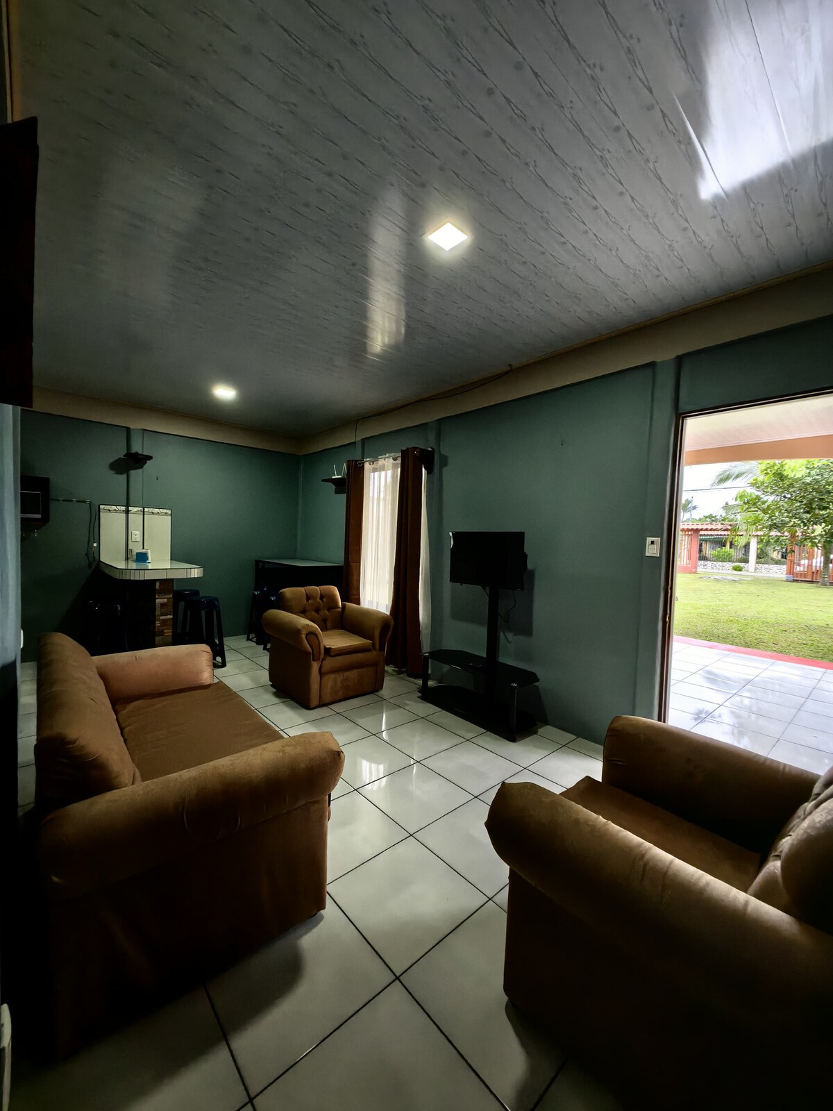 Private house in a 3000 m2 lot just on main road, for families or friends who want to rest in a natural rainforest environment, a step away from restaurants, bars and supermarkets. Different activities near the place (canopy, rafting, bird watching, frogs, hiking, river fishing) The house has a grill and independent entrance. Also pictures taken from surrounding areas. It will be a pleasure to have you in our house and make your experience in Costa Rica something unforgettable.