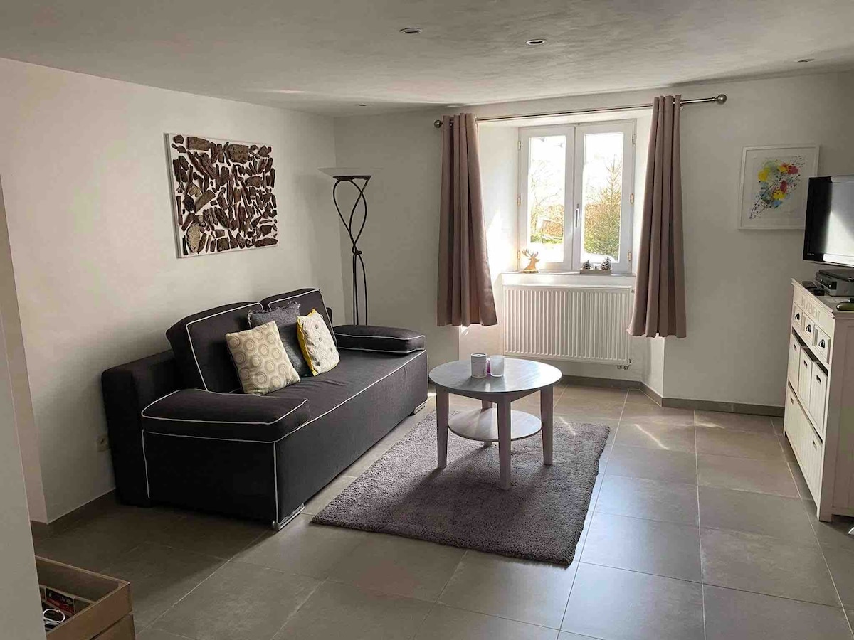 Large one bedroom detached guesthouse, located in a picturesque & quiet village in the Luxemburg Ardennes. Recently renovated, it features a brand new 12m2 bedroom with queen bed, large living room area with fully equipped kitchen, and a bathroom with shower. The living room has a convertible sofa bed, Satellite tv & Fire TV , and a area for dining or working. Outside is a private garden area surrounded by farms, hills, and forests, and a private parking space for the guesthouse.
