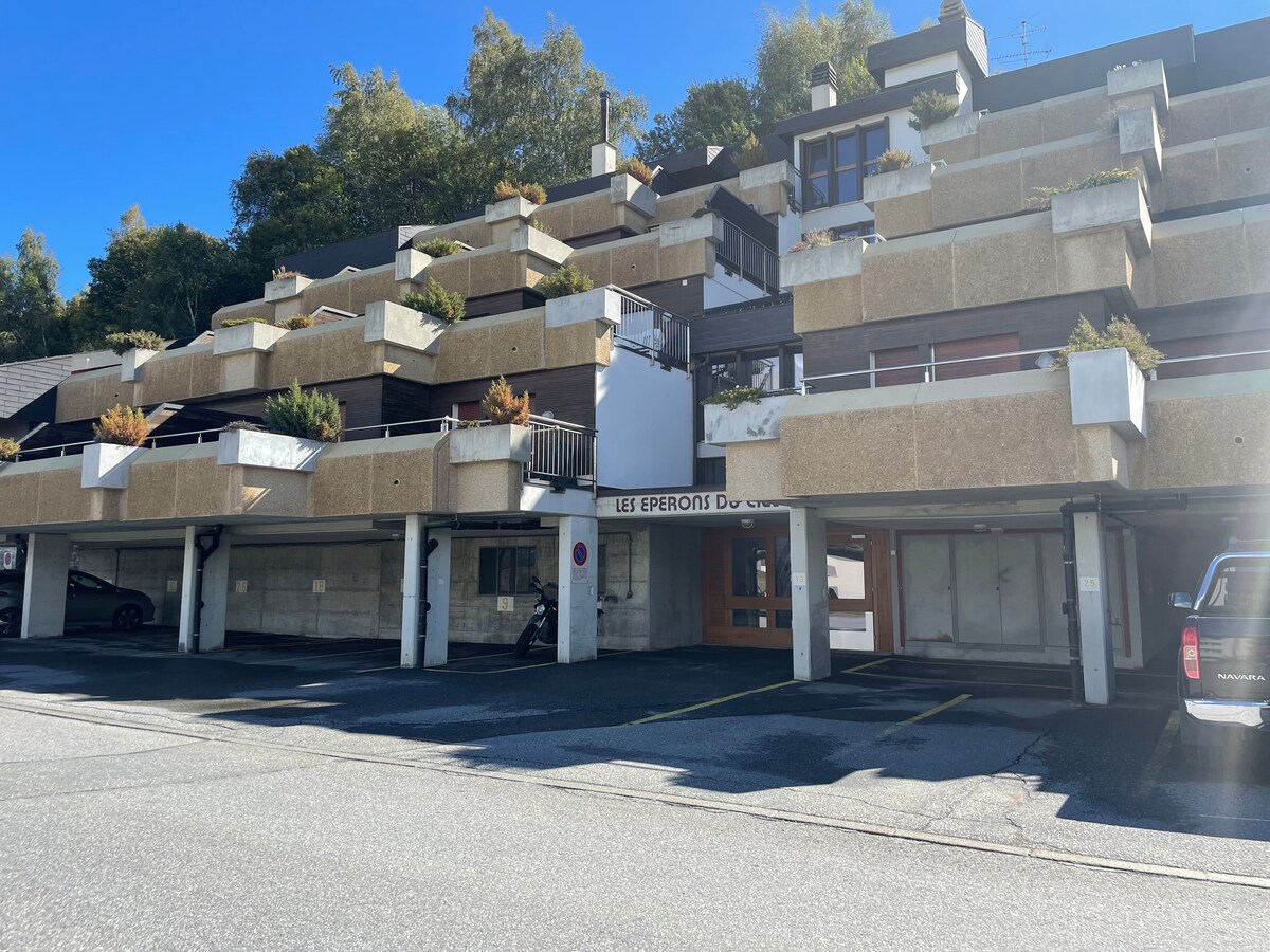 Dogs welcome.🐶 Tesla charger available free of charge. At the gates of Crans-Montana station, Le P'tit Chalet is a unique place to stay. In this independent 35 square meter studio with tasteful decor, there is an air of vacation and tranquility. It feels good. The large private terrace with barbecue is made for relaxing. We offer you homemade jam and a small bottle of local wine.