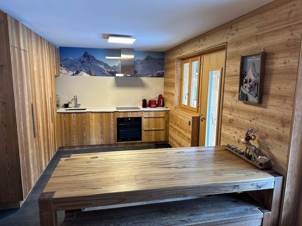 Modern, bright, warm and comfortable apartment, close to all amenities and to the funicular which takes you to the ski slopes in just 5 minutes. Exceptional views of the Matterhorn from the bedroom (even from the bed), the living room, the office area and of course the balcony, which is accessible from both rooms. Modern amenities: secure Wi-Fi, two large flat-screen TVs, Bose dock, etc.