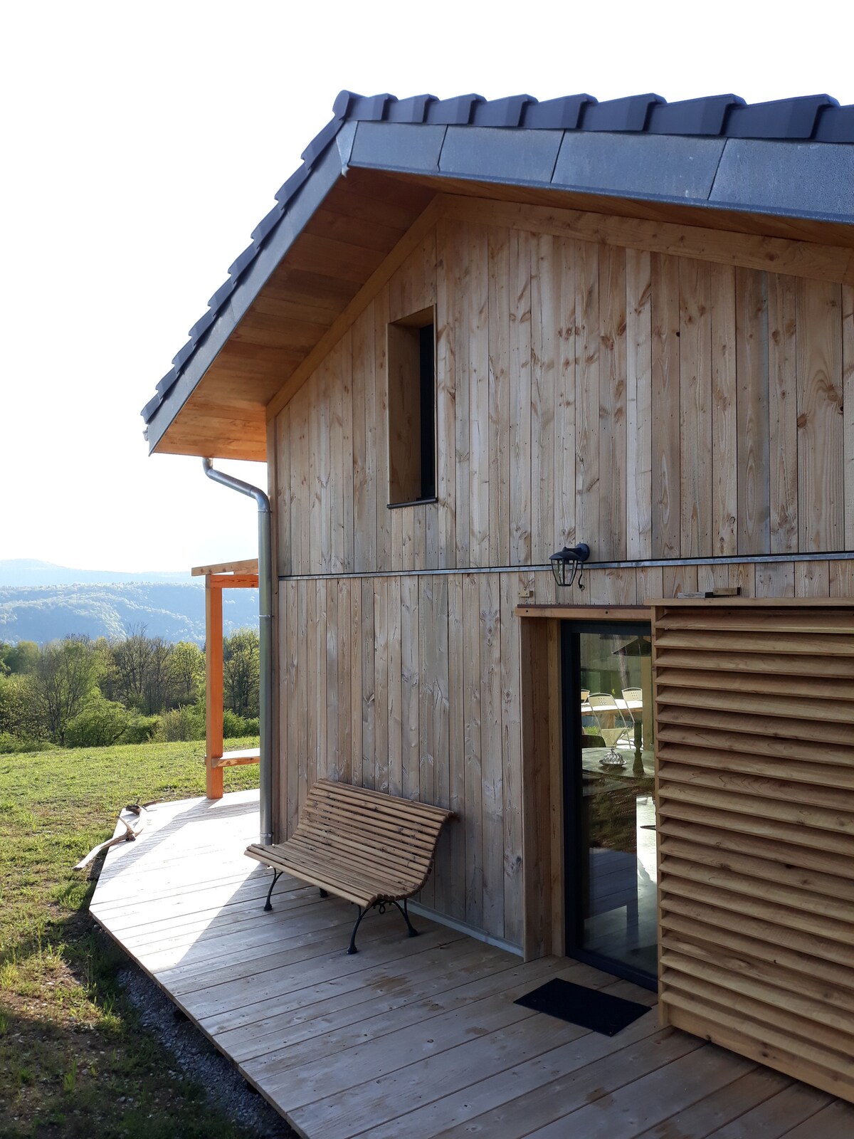 Maison en bois, en toute simplicité et délicatesse, au sein de la nature, face à un panorama magique. Cette maison unique de par sa conception écologique est située près du lac de Vouglans, dans le parc naturel du Haut-Jura. Entièrement construite de façon autonome par les propriétaires, elle bénéficie d'une ambiance chaleureuse, d'une décoration soignée et originale, d'équipements de qualité et d'une vue incroyable sur la vallée.