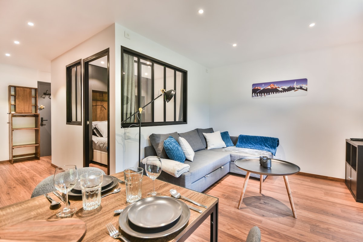 Take your time in this cozy studio, ready to welcome you. Located in the center of Les Gets, you will be close to all the points of interest in the village. Park your car when you arrive and pick it up after your stay ends. The ski lifts are a 500 m walk to access the entire Portes du Soleil area. In a quiet area, enjoy a relaxing read, accompanied by a cup of tea on the balcony with a beautiful mountain view. Enjoy your stay.