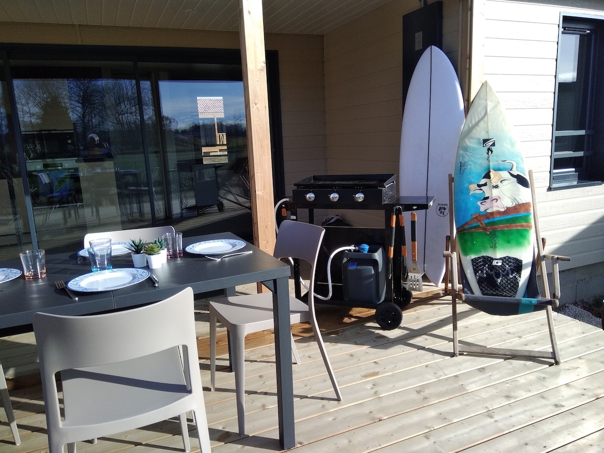 Completely renovated, this very functional 30 m2 accommodation with covered terrace is a cozy cocoon for a pleasant stay for couples, families or groups of friends. Upon arrival, leave your car in the secure parking lot of the residence. The proximity to the beach (Santocha, Prévent and Piste surf spots), the port, bike paths, restaurants and shops will enhance your stay with beautiful walks. Linens, towels, Wi-Fi provided free of charge.