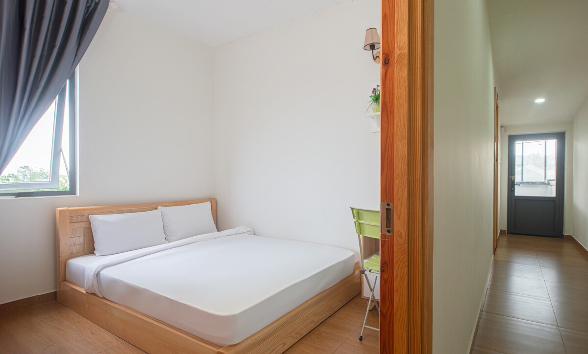 - Căn phòng 20m² xinh xắn mang sắc cam đất ấm áp, trang trí tinh tế với nội thất gỗ sáng tạo cảm giác dễ chịu và thư giãn. - Dù không có cửa sổ nhưng không gian vẫn thoáng và đủ ánh sáng, mang lại sự ấm cúng và riêng tư. - Phòng được trang bị đầy đủ tiện nghi: máy sấy tóc, bàn là, bình đun nước, nước nóng tắm 24/24. - Smart TV với Netflix miễn phí để bạn thư giãn sau 1 ngày khám phá Đà Lạt. - Dọn phòng hàng ngày miễn phí và dịch vụ cho thuê xe máy ngay tại homestay.