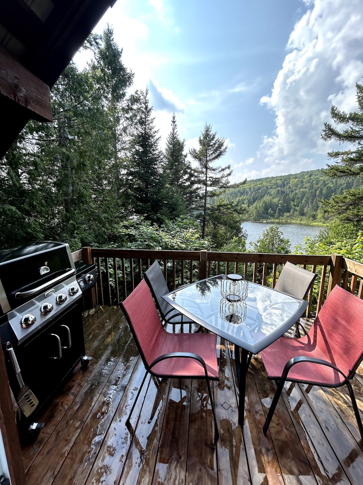 Cottage with exceptional panoramic view 1 hour 15 minutes from Montreal. Private direct river access for swimming, indoor and outdoor fireplace, BBQ, patio, swing and more! Many activities nearby (spa, tree to tree, skiing, snowshoeing, hiking, snowmobiling, quad biking etc.). Also perfect for remote working with high-speed Wi-Fi (fiber optic). Property Number: 227290