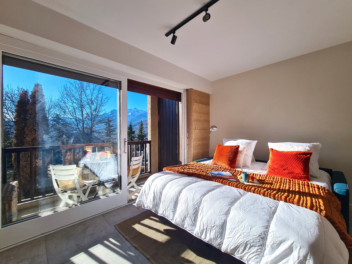 Want to visit the Hautes-Alpes for your next vacation? Our cottage "Le Carré de Bois" is ideally located on the heights of Briançon. A warm atmosphere, exceptional views, selected decoration and comfort amenities guarantee you an excellent stay in our mountains! Sun-drenched, the terrace and garden will allow you to enjoy the blue sky and the superb view of the surrounding peaks.