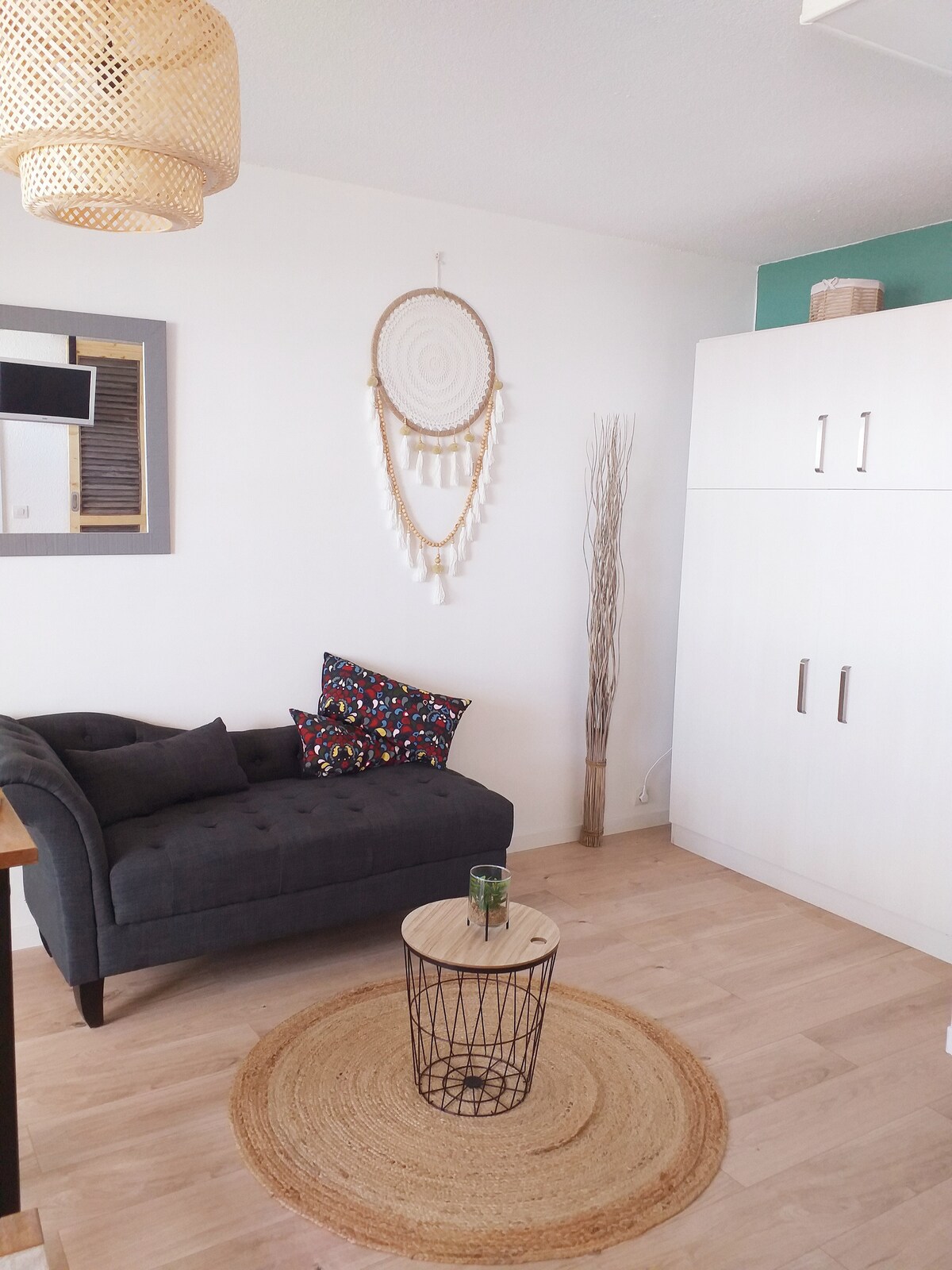 Studio 2 steps from the Ocean (30 meters from the South beach) 5 minutes from the city center (Ortal alleys with shops, restaurants, bars & clubs) South facing apartment and terrace, very bright. Ocean view from the terrace Courtesy residence and private space