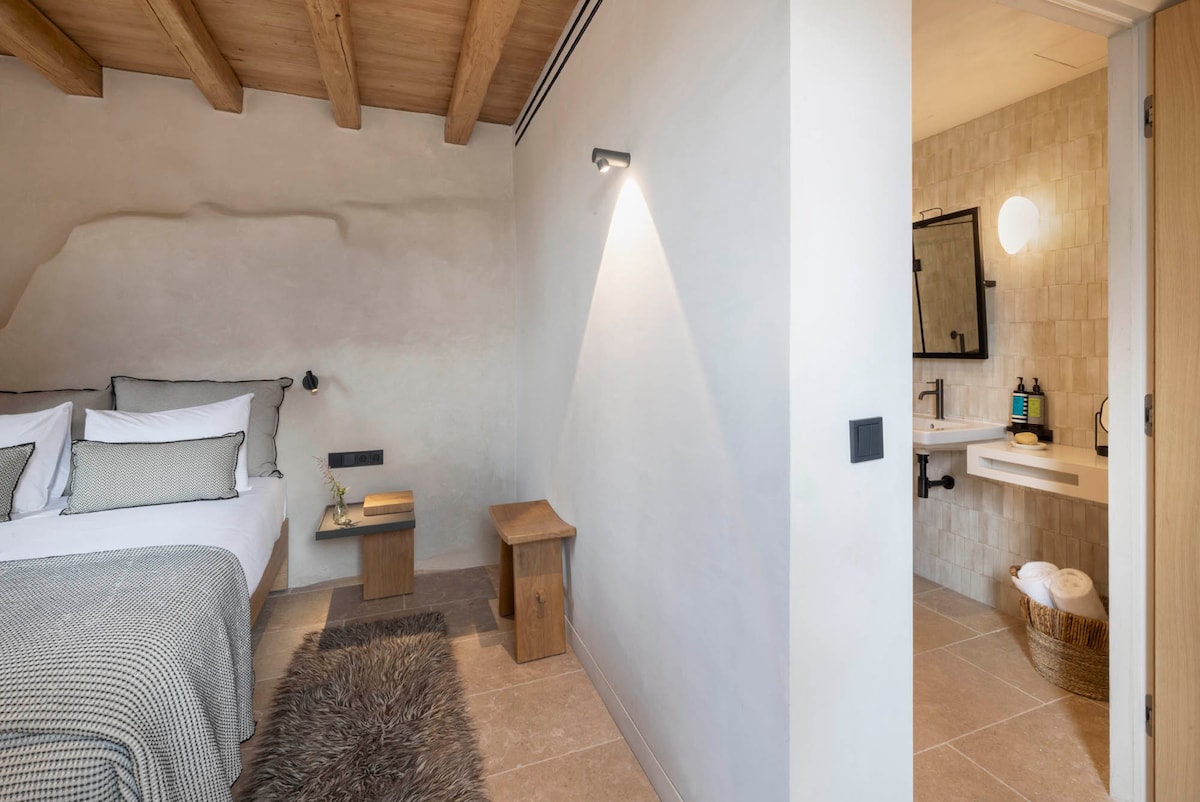 According to our philosophy, materials from nature have been used to match Mani's environment. Cozy suite with double comfortable bed, elevated bathroom and comfortable bed to relax on your vacation