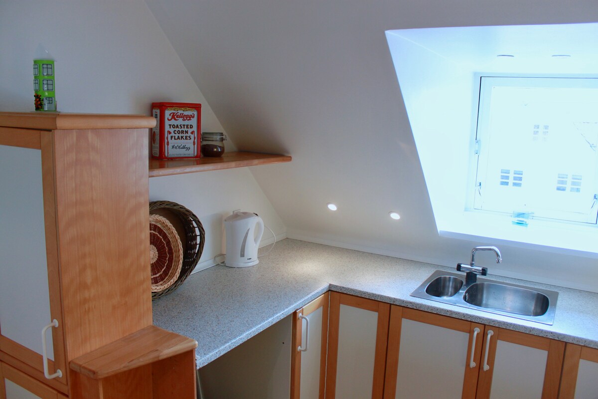 This unique home has its very own style. Come and experience a penthouse apartment very close to the water. Great views and atmosphere. The view is breathtaking from the moment you enter this exciting apartment. The apartment is furnished with a large living room with a balcony overlooking the sea, 2 double bedrooms, an office with 1 bed and a loft with space for 2 children. Multiform kitchen with dining area overlooking the sea. 1 bathroom with washing machine and dryer. Sæby Marina is a 5-minute walk away. Beach 200 meters.