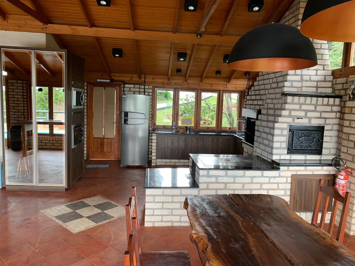 The Chácara is located in the town of Santa Terezinha do Salto in Lages/SC. The internal environment of the house was all designed with rustic and modern furniture, an extremely cozy place. Here you can enjoy contact with nature, listen to the birds, fish, eat fruit right from the tree, make pine nuts on the griddle, and warm up in front of the fireplace with a good wine. In summer, you can also enjoy good drinks around the pool. Buy now to enjoy this wonder in the Serra Catarinense.