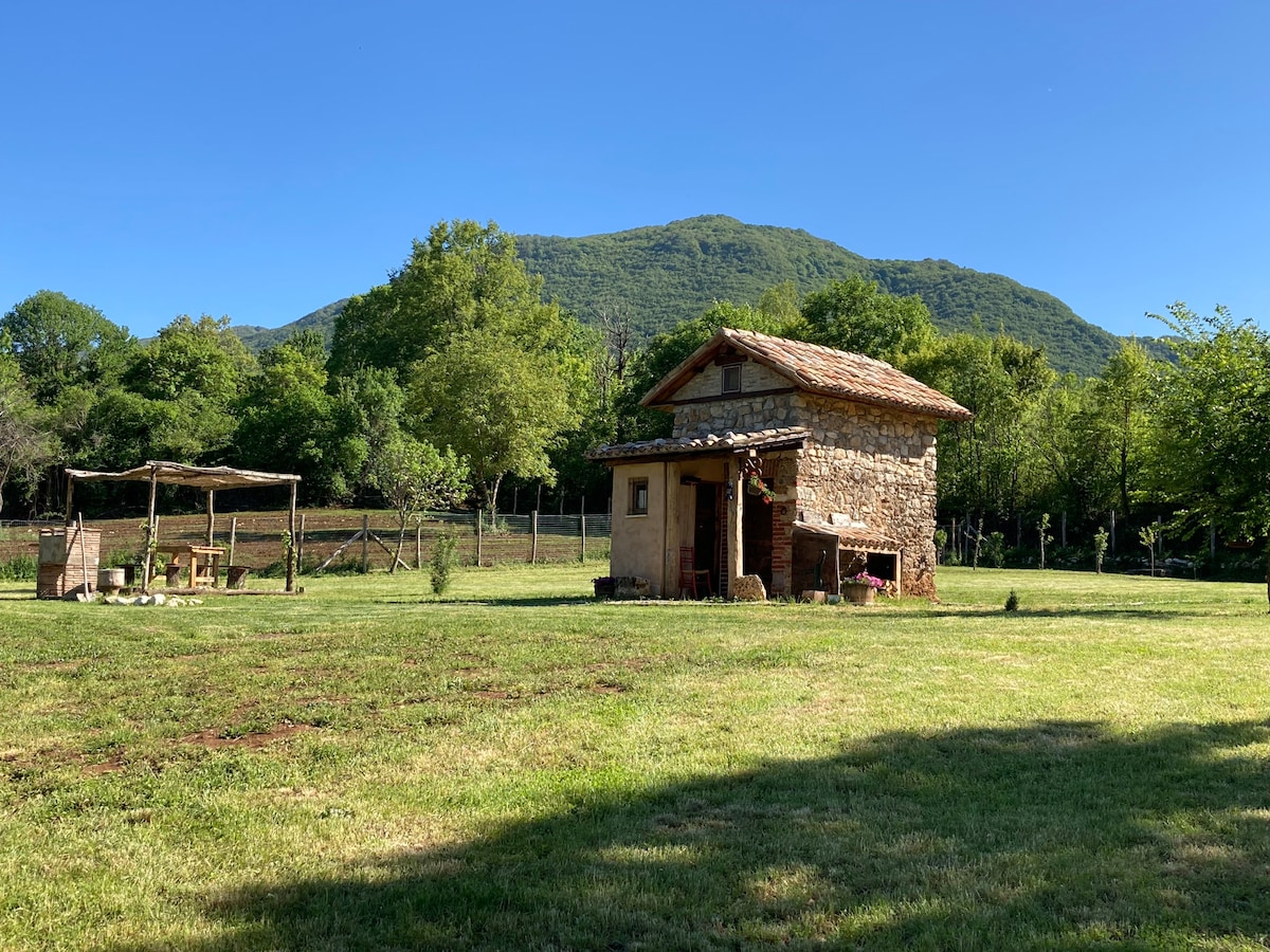 Immersed in the nature of the Simbruini Mountains, you can rediscover an ancient and natural environment inspired by the early 1900s. You will not find the comforts of a hotel room, but the unique experience of spending a weekend rediscovering the ancient customs of peasant culture. Lighting with candles, kitchen heating and hot water with wood-burning stove, well water with old manual pump. You won't find wifi but a connection between yourself and nature. 2 adults and 1 child