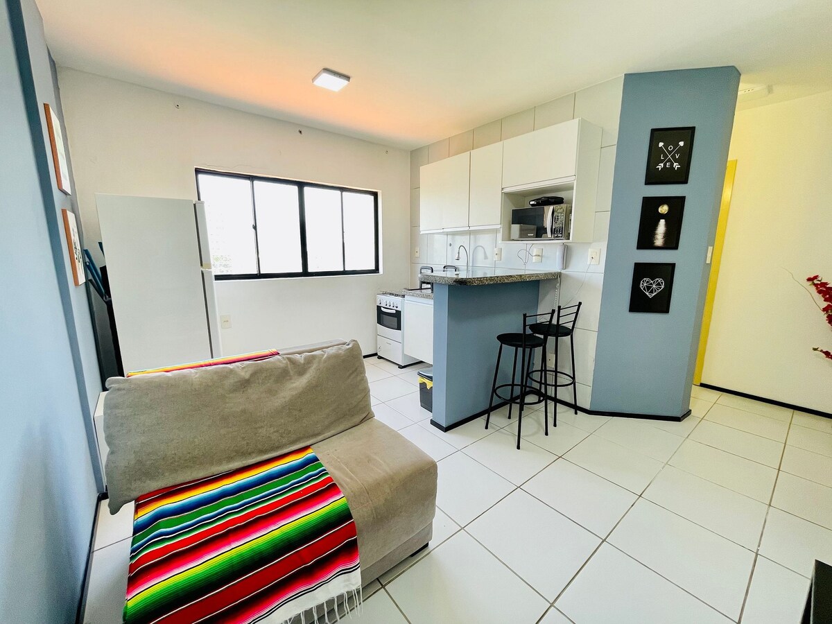 Modern, comfortable and well located, Studio no Calhau is perfect for those seeking practicality and well-being in São Luís. With elegant décor, an equipped kitchen, a cozy bed, Wi-Fi and air conditioning, the space offers everything for a complete stay. Close to beaches, malls and restaurants, it is the ideal place to relax and enjoy the best of the city.
