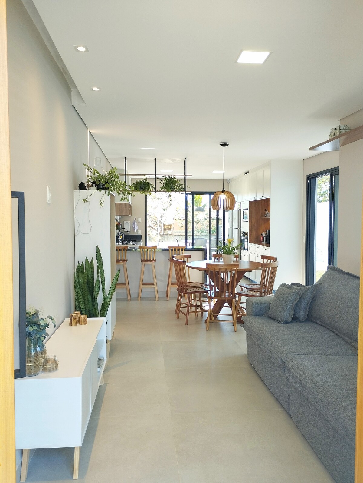 Large and cozy house in a gated community in Lagoa Santa. There are 400 m² built on a generous 1,400 m² plot, with integrated rooms, a full kitchen with an island and a gourmet area. Lovely outdoor area with a swimming pool with a hot tub, pergola and pond with fish. The landscaping is a show apart! ✨️ We have 4 bedrooms (1 master suite with hydro, 1 suite and 2 semi-suites), TV room and workspace. Entire and exclusive house.